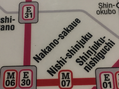 - Nishi Shinjuku (M07) and Shin-Koenji is M03. Get down at Shin Koenji.